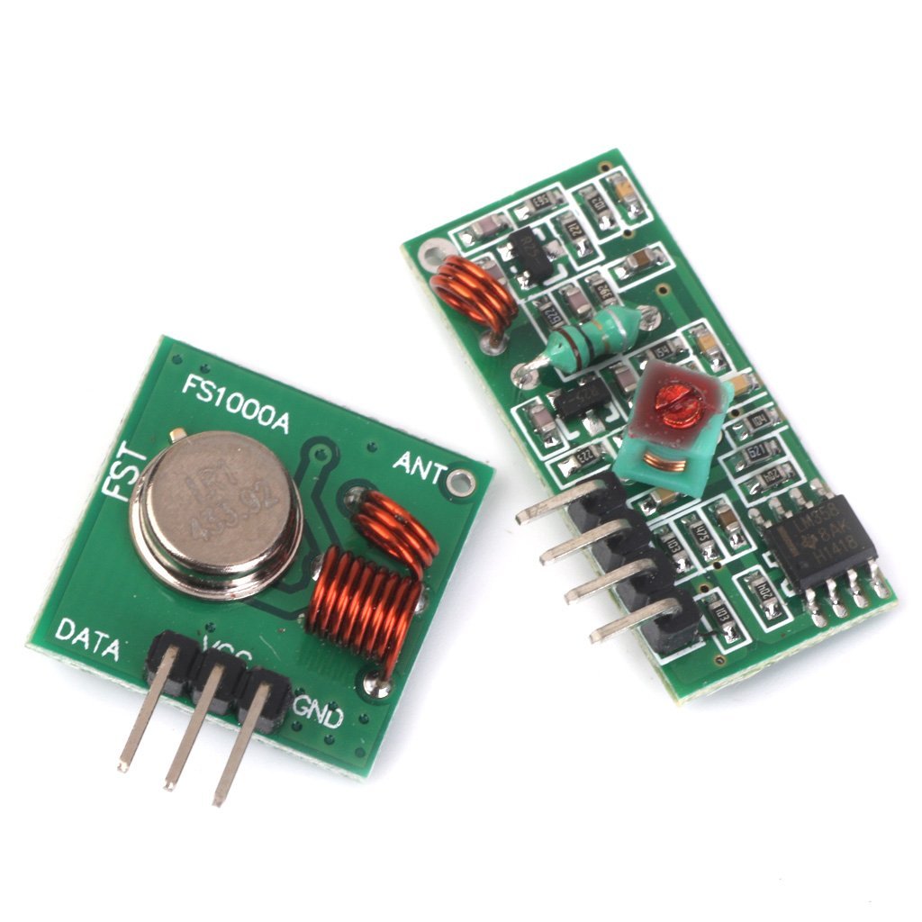 Low-cost 433 MHz transmitter and super-regenerative receiver modules for simple remote control, telemetry and sensor links. Range depends on antenna and environment — suitable for short-range DIY RF projects.
