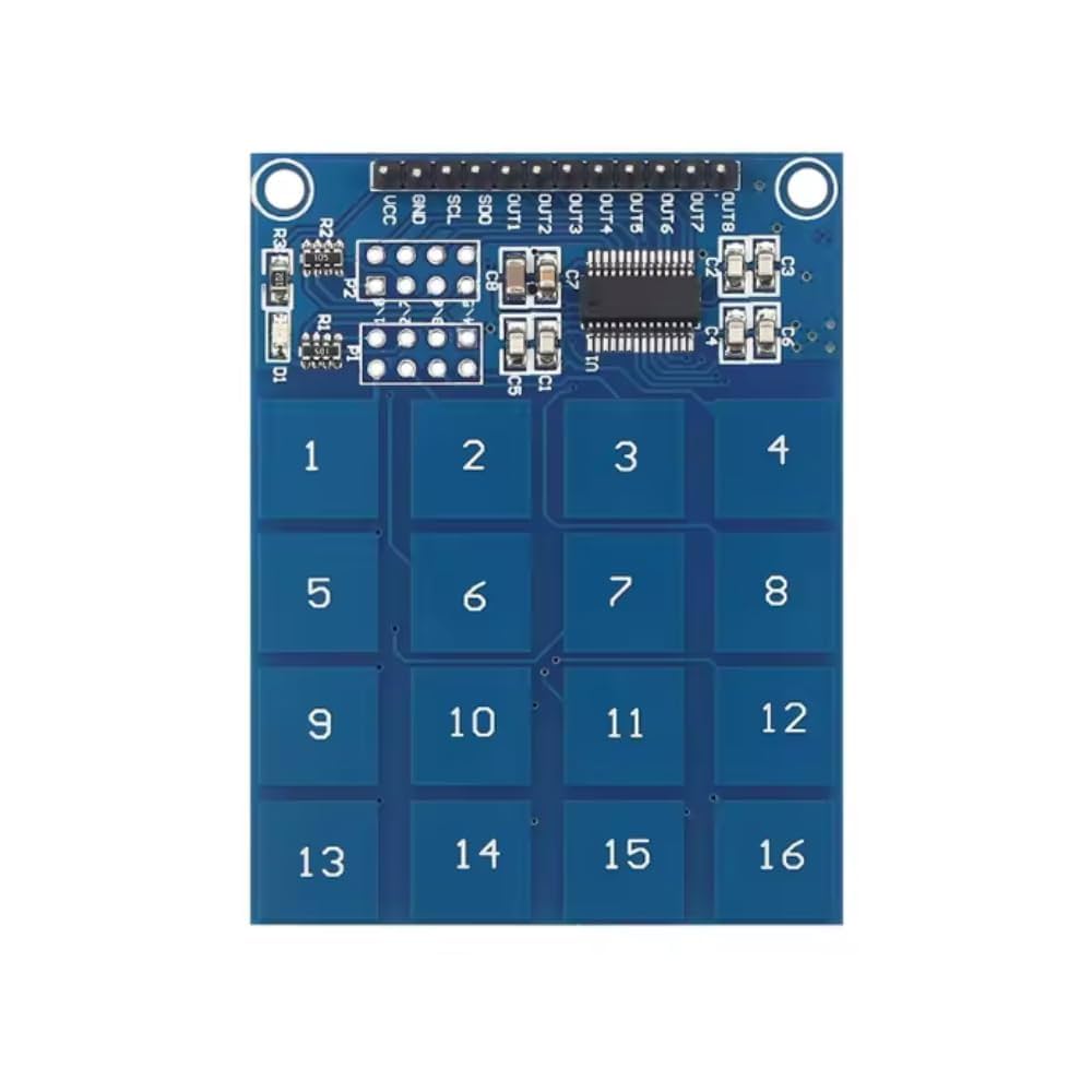 16-key TTP229 capacitive touch sensor module. Supports up to 16 touch pads. Ideal for custom keypads in interactive projects.